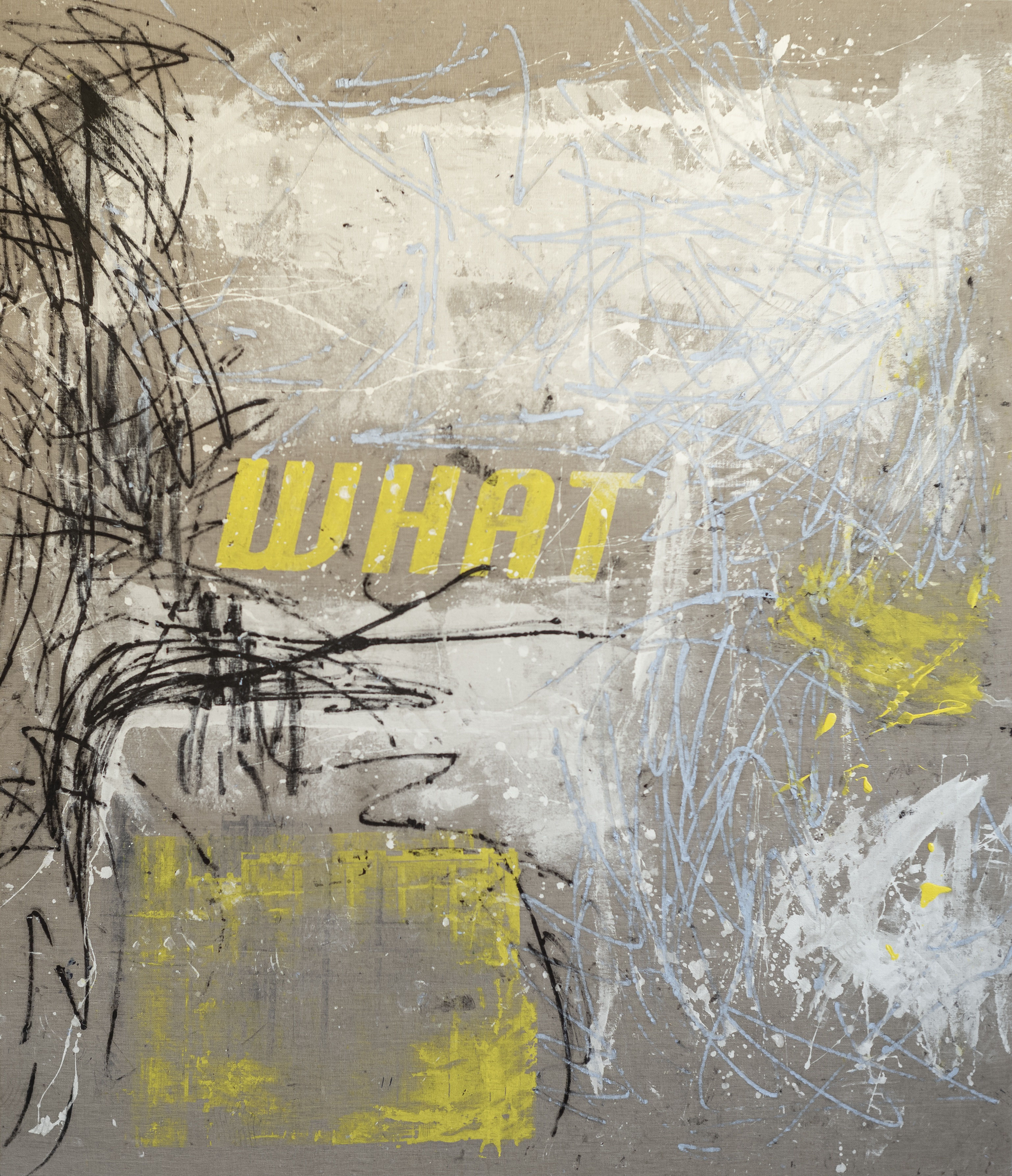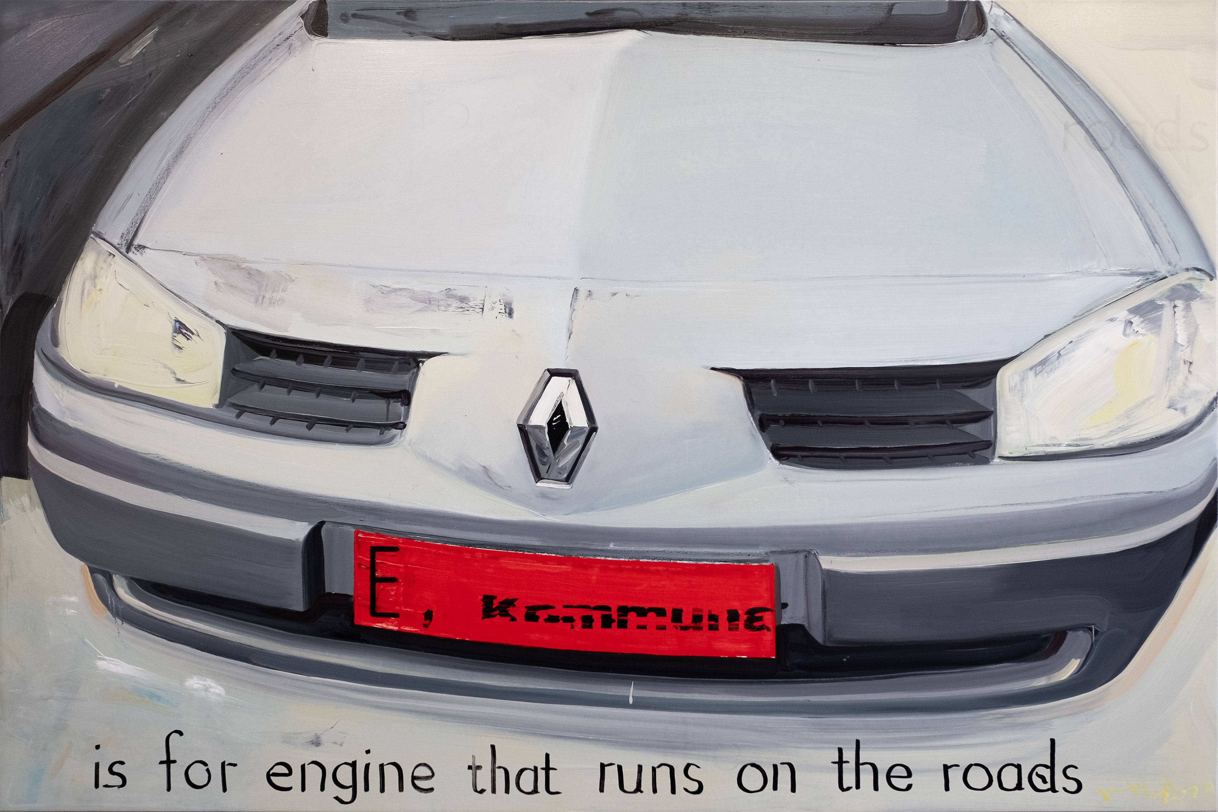 在陈问村的作品中,文字的元素反复出现在不同艺术媒介的各个角落。这些字词往往是零散而架空的,以“掠影”(Glimpses)的形式驻留在观者的视线中,仿佛在飞驰的汽车上不断经过路边的标语,由文本落在视网膜的瞬间留下强烈却含混的片段性印象。“语言”被拆解成由单个字词构成的基本组分,继而被重组,形成新的艺术表达的语言体系。艺术家借助文字这一会使人“不受控地去理解”的元素,以强势的姿态占领性地传递给观者的艺术内涵。