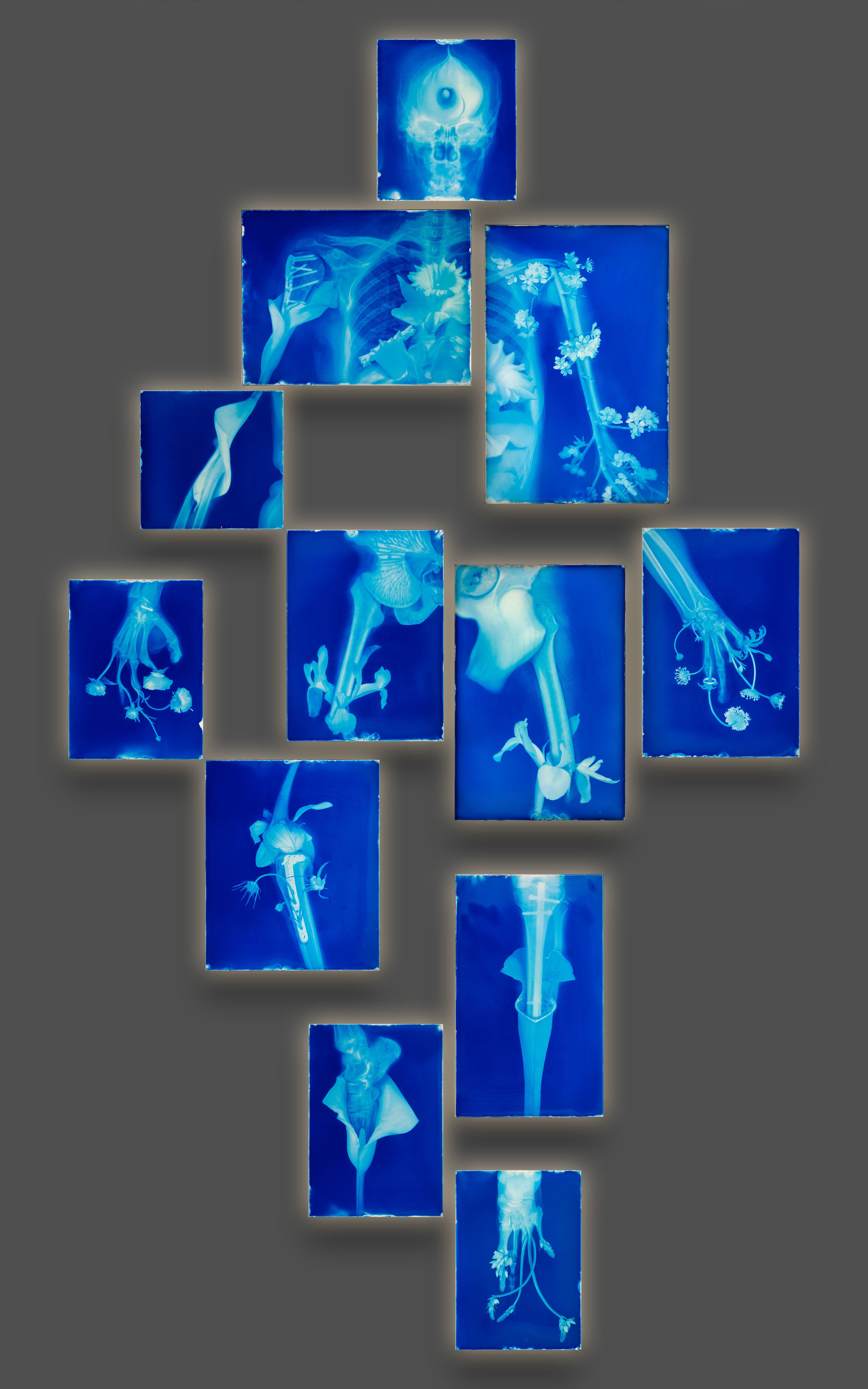 北美原住民的创世神话中,神灵通过肢体动作创造山川河流,身体成为自然地貌的起源。德国艺术家Olaf Hajek的作品在绚丽视觉叙事中融合民俗元素,并痴迷于解构自然与人类的界限。在他的画面中,人体化为植物根系,动物骨骼与机械部件共生嫁接,人类与非人类的生命共享同一具身性基体。与之形成对话的是艺术家胡为一 (Weiyi Hu) 的灯箱装置作品“梦中身No.4”。艺术家收集医院的受伤人体X光片,再通过药用植物的“介入”,作品超越了单纯的身体隐喻,提出了一种跨物种、后人类(post-human)的想象,也回应了当代生态哲学中对“多物种共生”的思考。在本次展览语境中,此类图像构成对“人类例外论”的隐性批判——正如本次展览“春之祭”追问献祭逻辑的暴力:也许人体不过是自然能量流动的临时容器?