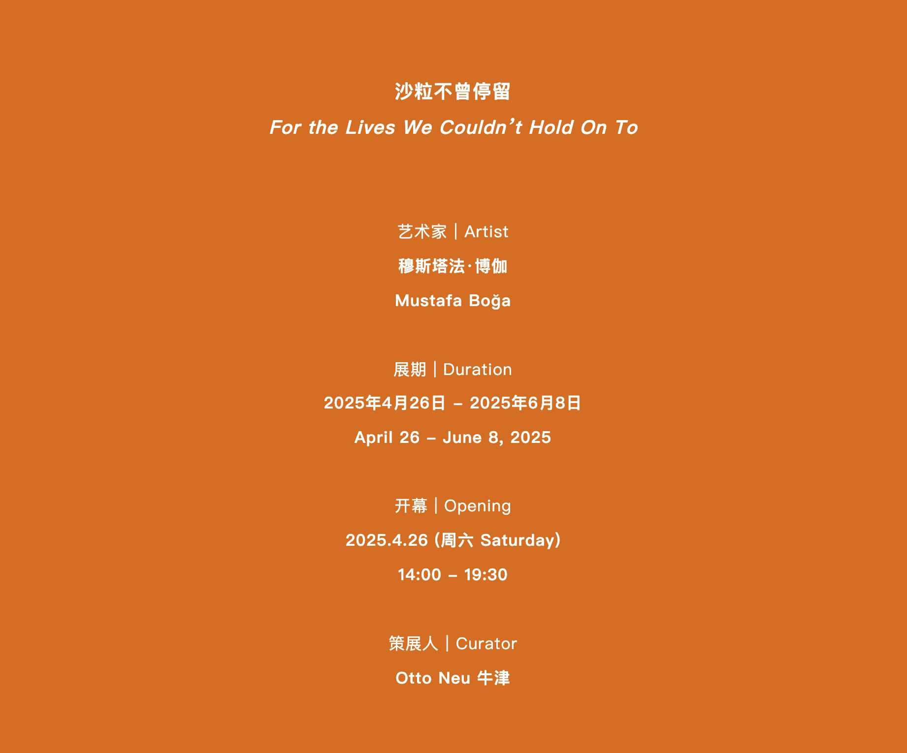Time has been likened by poets to sand—shifting, slipping, ungraspable. And perhaps we, too, are no more than singular grains within its vast desert. The evidence of our existence may be remembered or erased, archived or lost. But through his practice, Mustafa crystallizes the lives of “ordinary people” into form, into presence, into permanence. He folds them into the cultural and artistic record. In his hands, even a grain of sand becomes eternal.