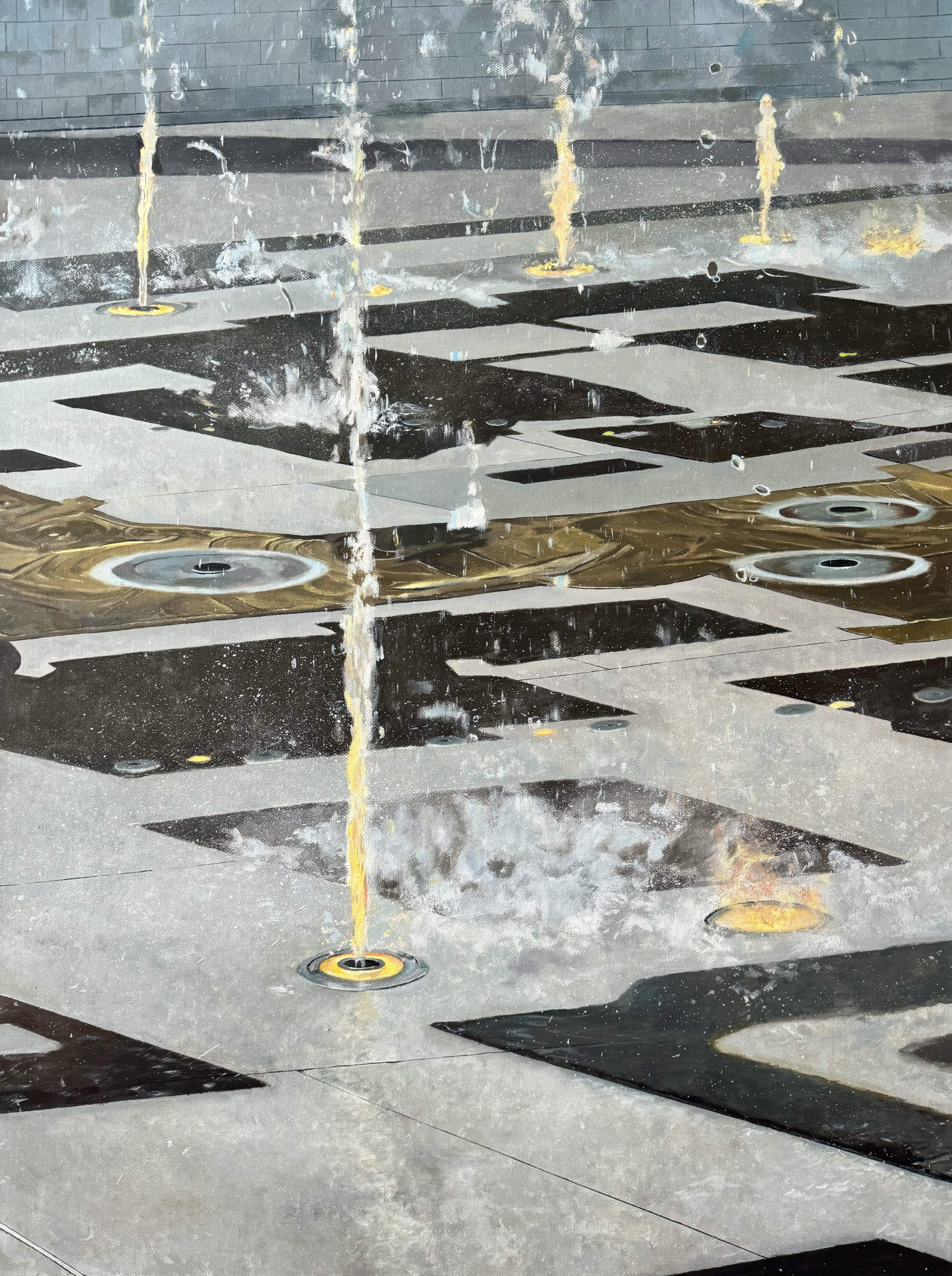 The "Spring Plaza" series depicts fountains in the square, where the copper finish contrasts with the ripples of water, symbolically echoing the cyclical nature of civilization's progress. From ancient city-states to modern metropolises, fountains have always stood as iconic structures. Originally serving as functional sources of pure water, they have evolved into lively embellishments of urban landscapes. The ever-circulating water metaphorically represents the fusion of human civilization’s origins and its future path. The flowing water of the fountain cleanses and reveals the potential for copper elements to exist and immerse themselves in the life of the city, completing the visual narrative of the circular.