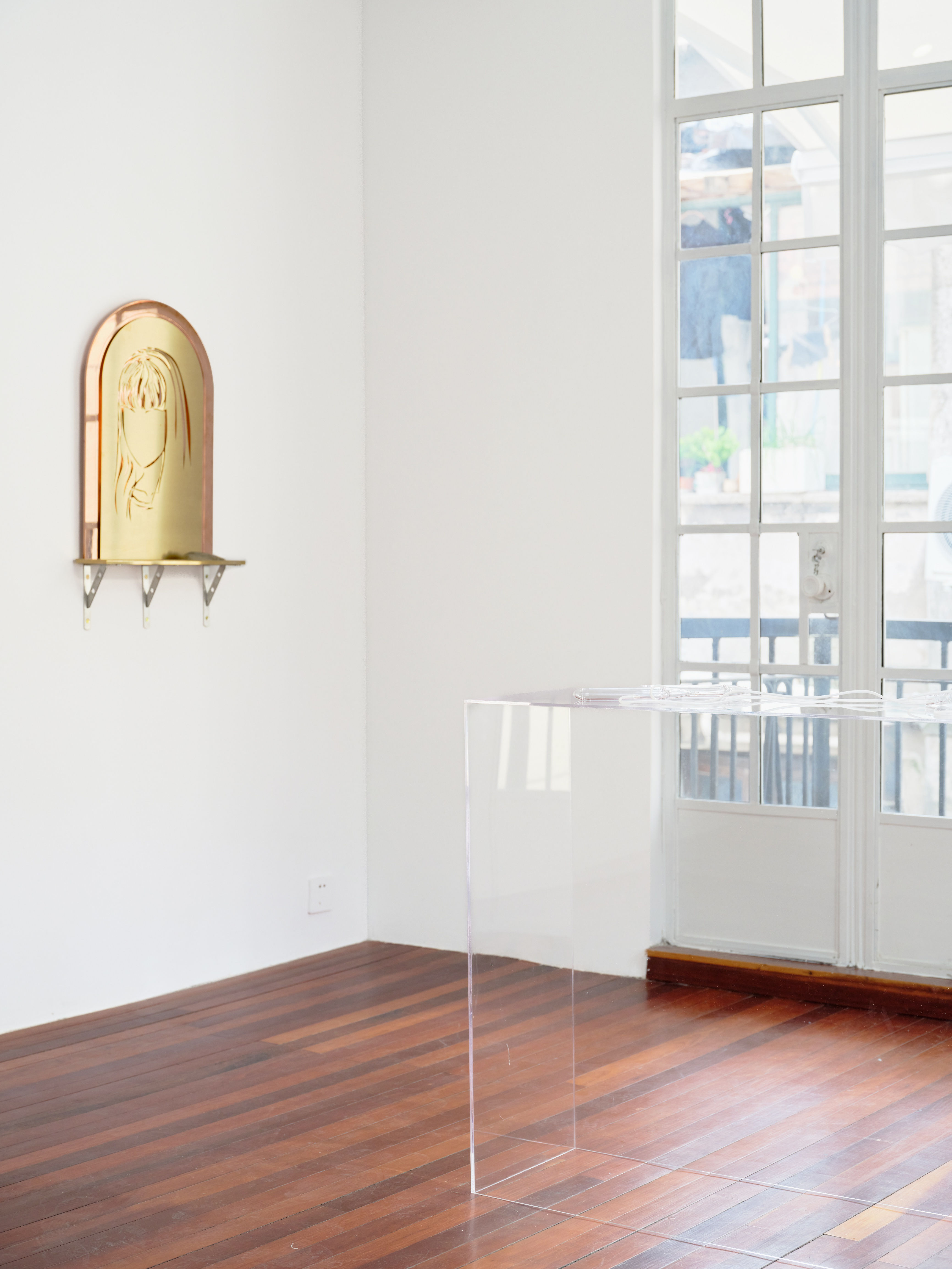 This concept is echoed in the installation of bronze mirrors, where Kawakami Tomie's form is cleverly transformed and deleted, making it appear as a frame of perfect appearance, lying dormant and waiting to frame every visitor who needs to create and demand his or her own appearance.