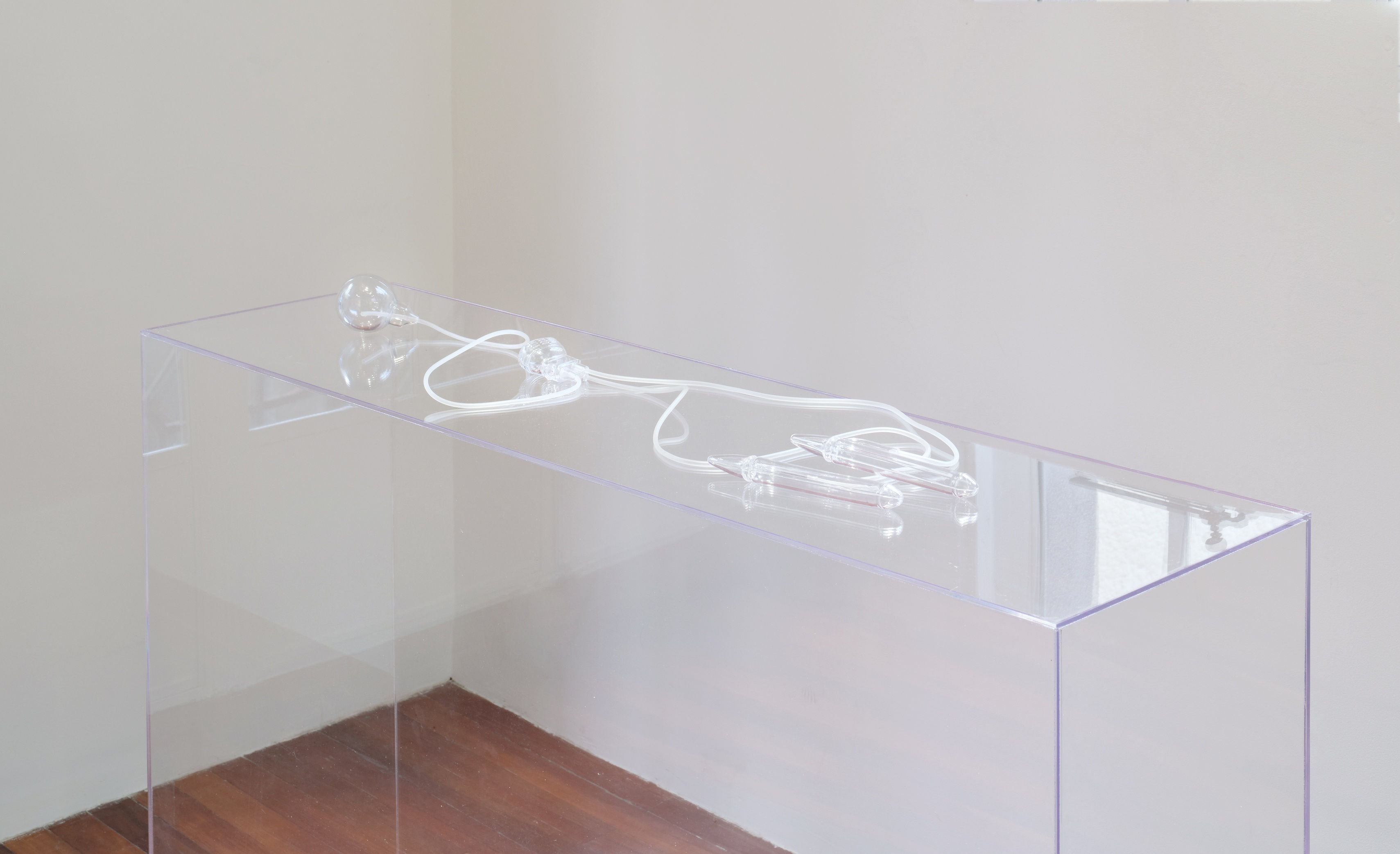 In ancient Greek mythology, Venus was born when the penis of Uranus, cut off by his son in a fit of rage, fell into the sea, stirring up thick white foam. On the three floors vertically above the image of "Foam Girl", the sculpture "Fragile" takes its shape from Boston Scientific's AMS 700 LGX artificial sponge, which will be available in China in 2022, and is a metaphor for society's "standards" for the male phallus. It is a metaphor for society's "standards" for the male phallus. The "male dignity" shaped and sculpted by the social structure is contained in a transparent acrylic box, dazzling and void.