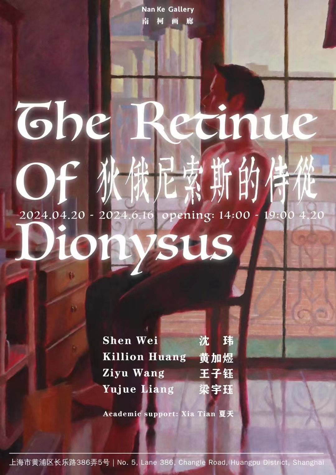 In the exhibition The Retinue of Dionysus, Killion Huang's works are undoubtedly strong and eye-catching. Large panels of varying shades of red are spread across the second floor space, and flow ambiguously in the direction of purple and blue, like the “Blues Moments” of the day. The brightness of the day was beginning to be diminished and eroded, while the forces of the night had yet to be fully nourished and strengthened. The setting sun is like an explosion of combustion resulting from the entanglement of the two sides, and the image captures the moment when the flames have opened up to a frenzy. The violent aftermath is still there, but gradually shifts to a quiet moment that is indefinitely elongated and solidified into an eternity of embers and silhouettes.