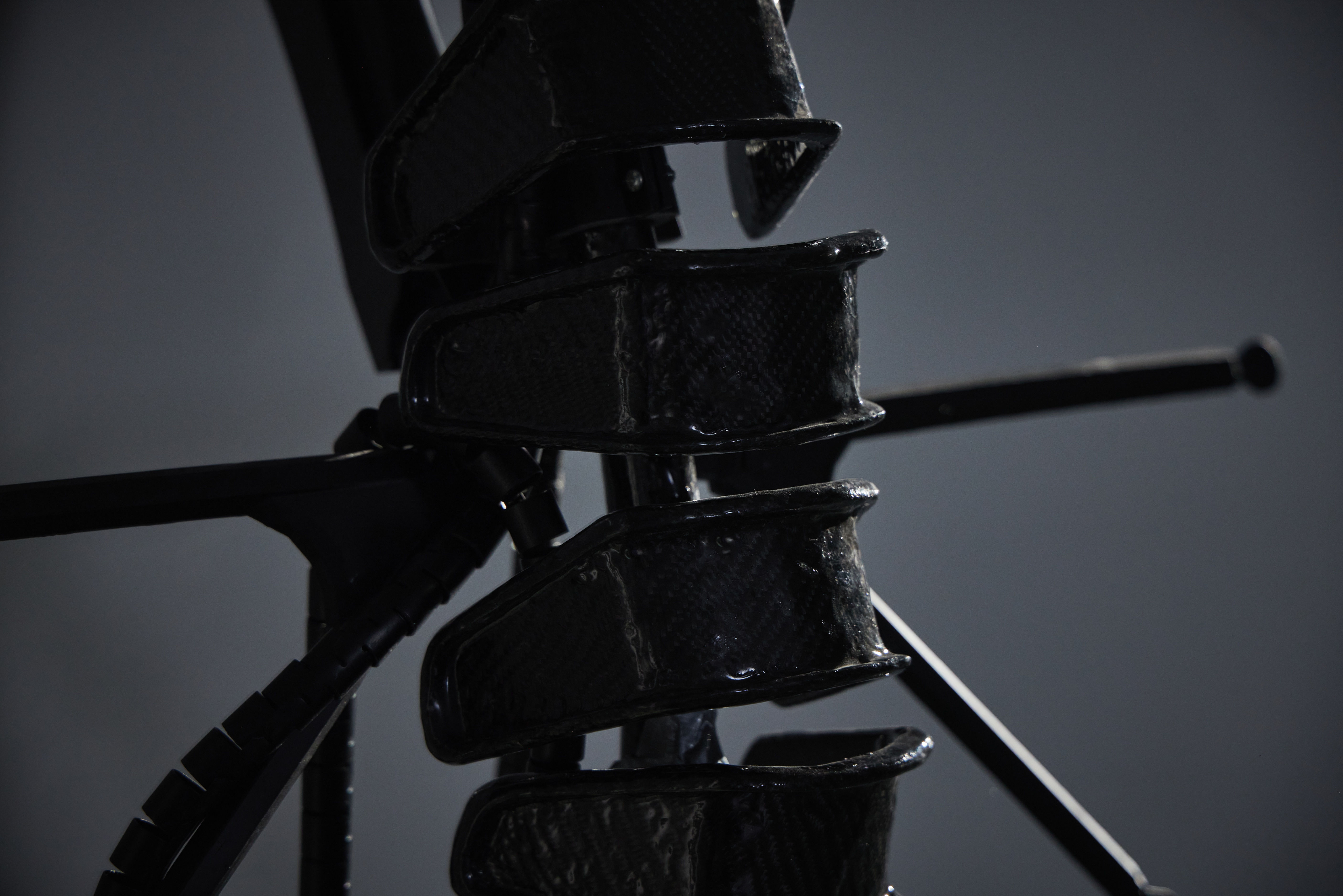 Yujue Liang presents two pieces in this exhibition, "New Breed" and "New Breed-Residue", forming a dual narrative on masculinity's dichotomousnature. The sculptures resemble charred skeletons, remnants of bodies after fierce battles, accompanied by surrounding sound effects, portraying a complex coexistence of hardness and sorrow.