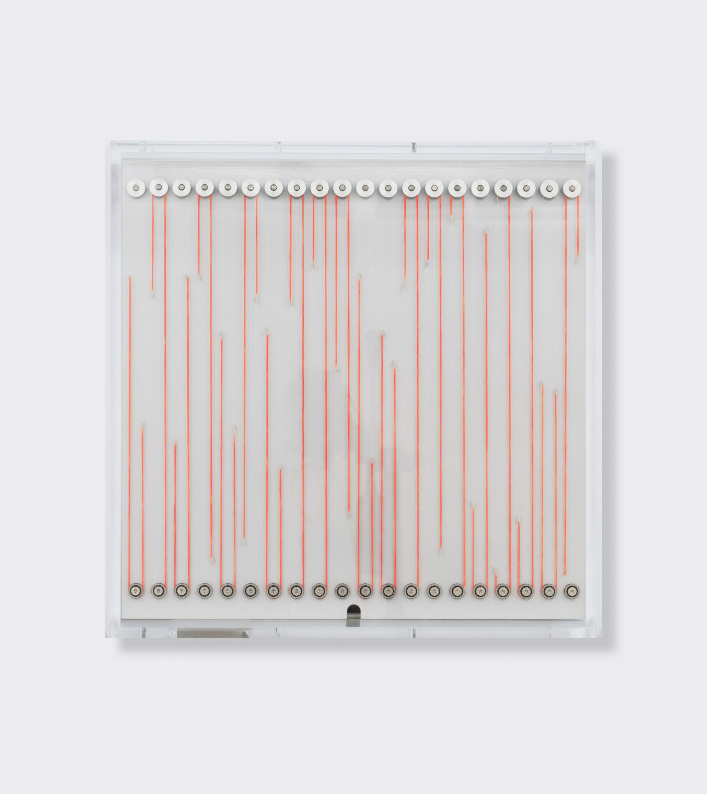 Ruyun Gao is a shanghai-born artist, his practice is based on installation, sculpture, painting and photography. He use mechanical movement with no intended form or rhythm, to avoid subjectivity and emotion. when confronting the pieces the viewer maintains a certain distance, which helps to desensitize their perceptions as these “art works”. This allows the viewer to enter a space of deep contemplation. His black lines follow designated paths and rhythms, drawing together and then apart. This constant cyclical movement leaves the observer with undefined time and space which sketched from geometric lines. I make use of the mathematical form of infinite convergence, creating “mathematical objects” endowed with structure, function, number, space and movement.