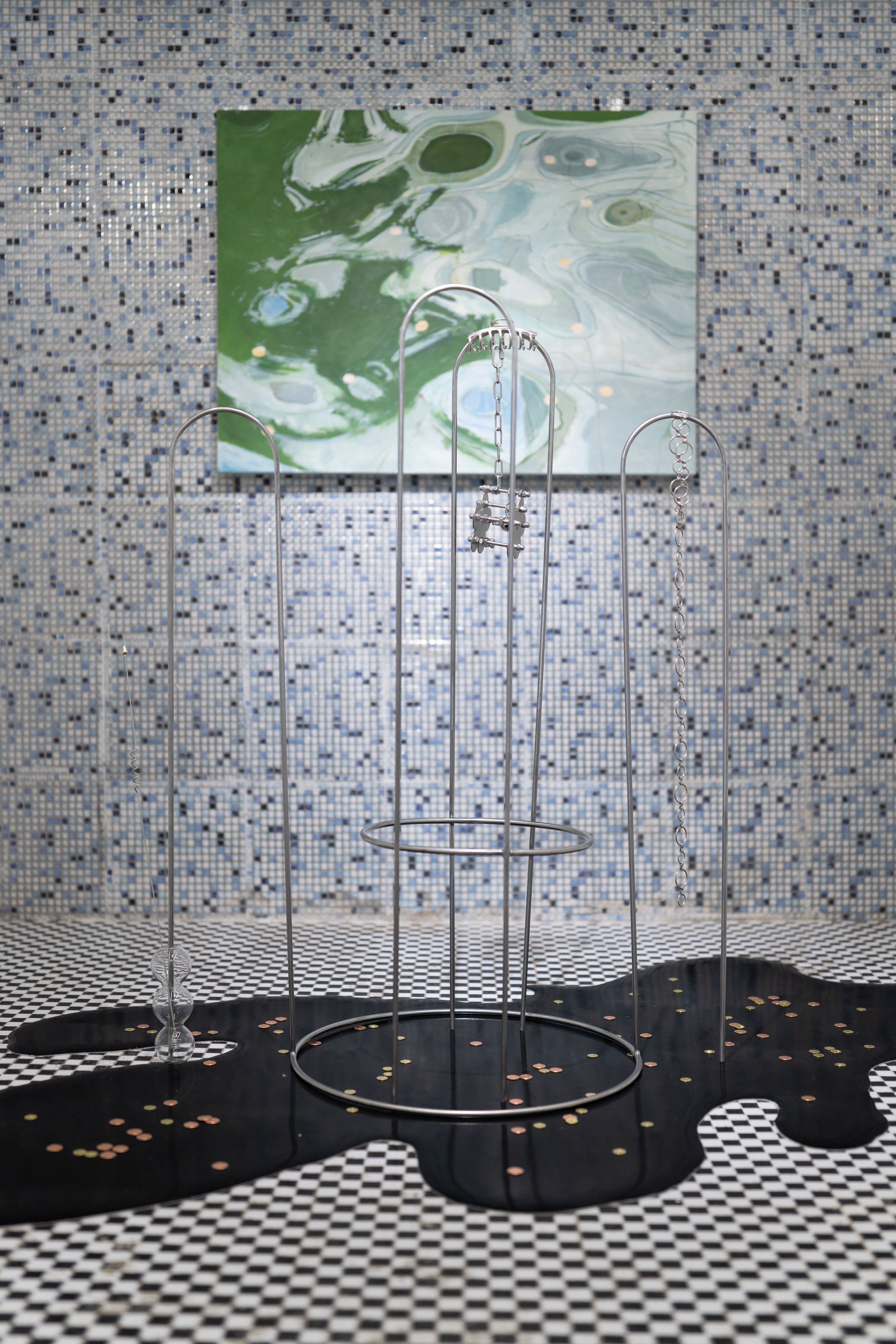 Mechanics embodies the manifestation of force, a concept frequently utilized to encapsulate the relationships within human society and the resulting dynamic equilibrium. From Aristotle's assertion that "all action is the result of interaction" to Jaspers' theory of "twice-told conversations", the tension and release inherent in mechanics have long served as a metaphor and resolution for social relations. The installation piece "Everything is Temporary" eloquently underscores this notion: chess pieces in tension, windmills rotating with the sunlight, foot molds used for nail art practice, treadmill for drums—all these elements compose a subconscious montage, reconfiguring fragments of tension and balance in the three-dimensional world. It feels as though the balance could be shattered in the next moment: chess pieces wandering and consuming, drums shout sharply, windmills starting or halting their rotations with variable speeds. The equilibrium of forces from the past exists only momentarily, swiftly transitioning into the next balance under the chaotic control of tension. Everything is temporary, and time gracefully oscillates forward within these fleeting moments of equilibrium.