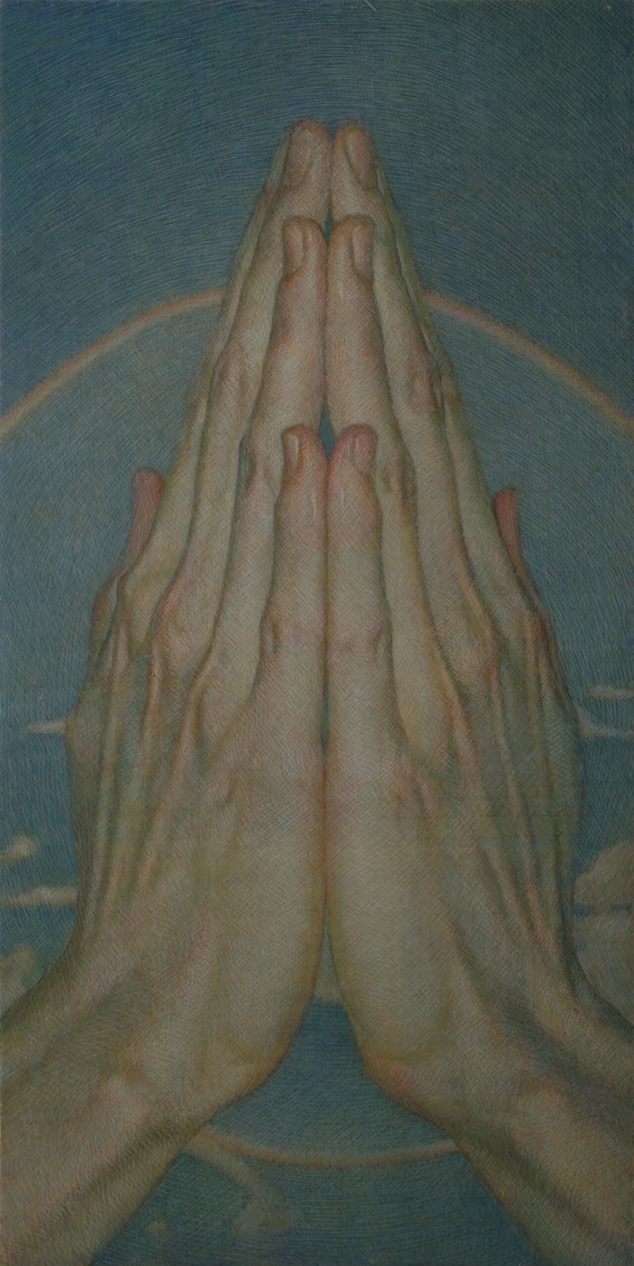 Tempera, as his primary medium, is closely aligned with this working method. Its soft, matte surface reduces the immediacy of visual impact, keeping emotion within a restrained register. More importantly, tempera builds the image through the accumulation of lines; its slow process naturally incorporates time. In Duan’s paintings, this time is translated into visible linear traces, preserved layer by layer on the surface.