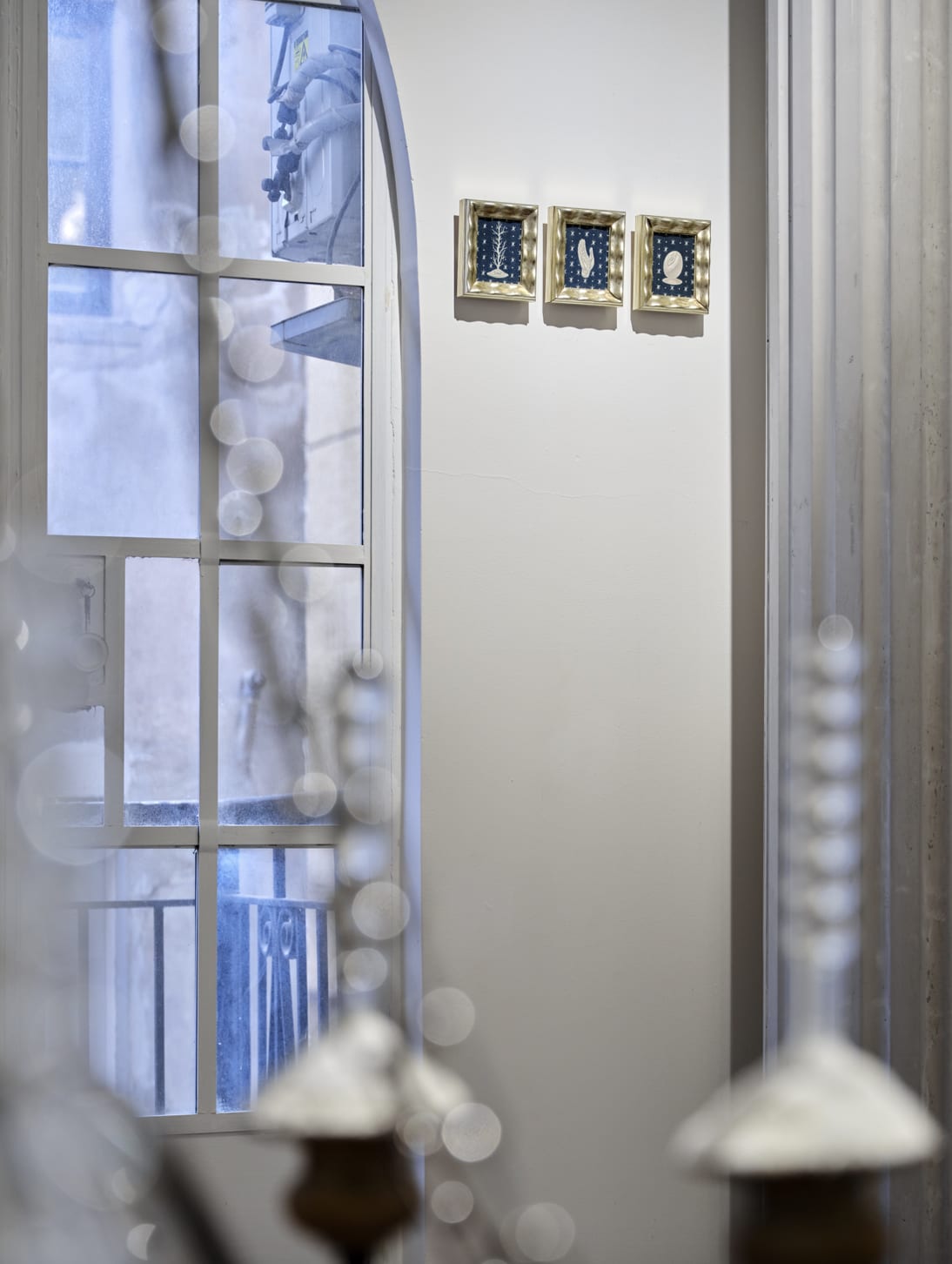 Installation view of 120 Days of Sodom, Jan. 10, 2026 - Mar. 8, 2026, Nan Ke Gallery, Shanghai, ©Courtesy of Nan Ke Gallery, Photographed by Runxin.In this exhibition, Chen’s works establish a viewing trajectory that shifts from intimacy to pressure through the juxtaposition of different scales and densities. The small-scale triptych The Bestowing Virtue is set against a background of star-chart motifs imbued with a medieval sensibility, producing a restrained and enclosed sense of time. In the foreground, organs and growing plants appear side by side, compressing internal structures of life and outward proliferation into a tightly limited pictorial field. The result is an almost allegorical space of observation that demands proximity and duration, turning viewing into a slow and introspective act.