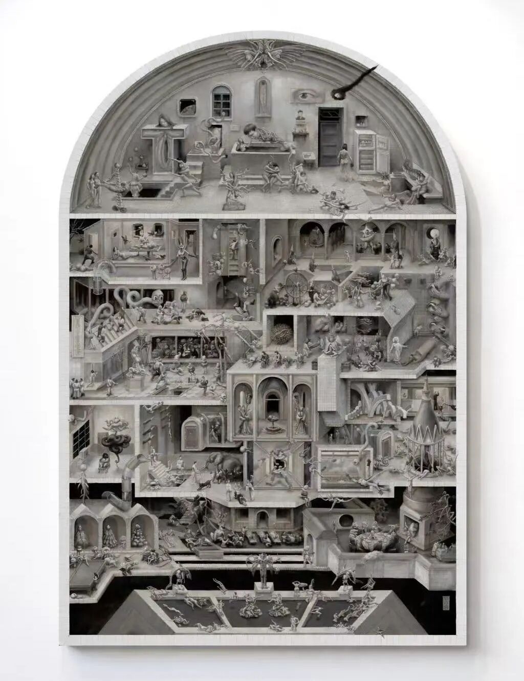 In 120 Days of Sodom, Gaojie Chen constructs a continuously operating visual system through a highly self-contained classical pictorial language. With linear narrative development deliberately set aside, tension repeatedly unfolds between order and loss of control, allowing painting itself to function as an apparatus that carries projections of desire, power, and fate. Classical paradigms are reactivated, transforming perspective, arches, axial structures, and rigorous composition into vessels capable of containing disorder.